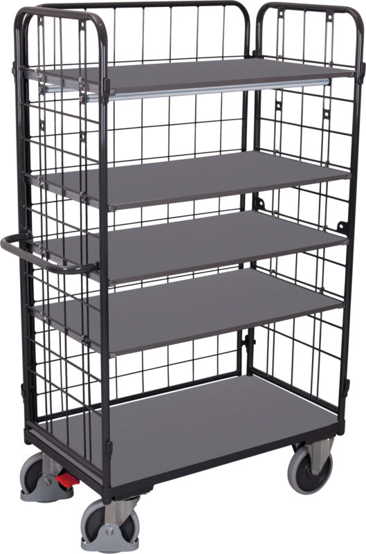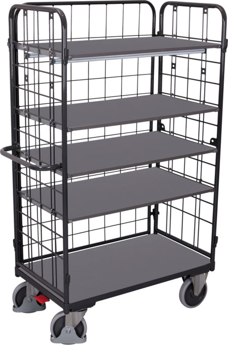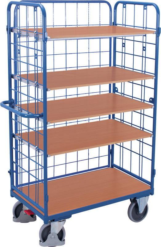 Třístranný vysoký policový vozík, 4 police