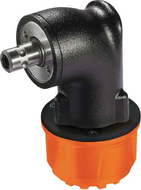 Kovová úhlová hlava pro vrtání, vrtání závitů a šroubování v těsných prostorách.