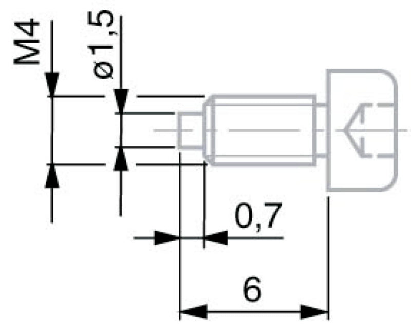 Upínací šroub VKD M4 × 6 s průměrem odsazení 1,5 mm a délkou 0,7 mm