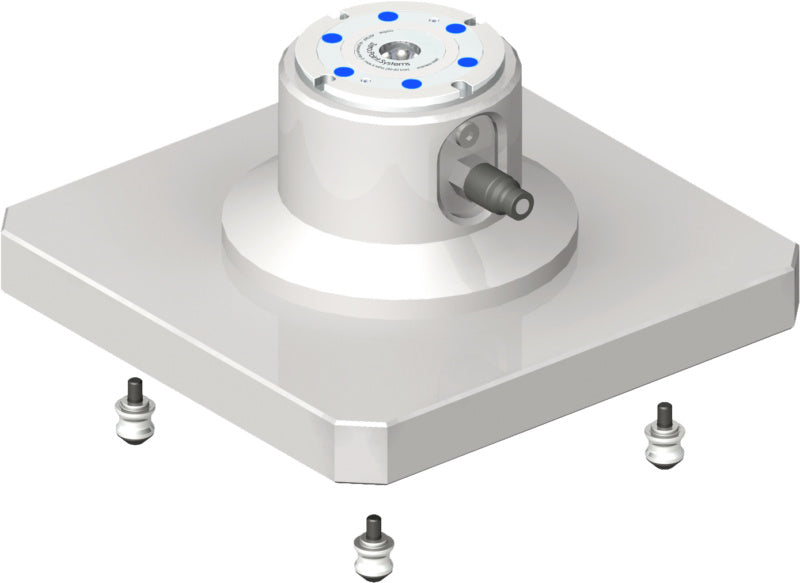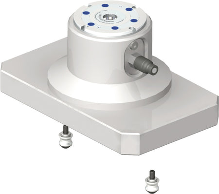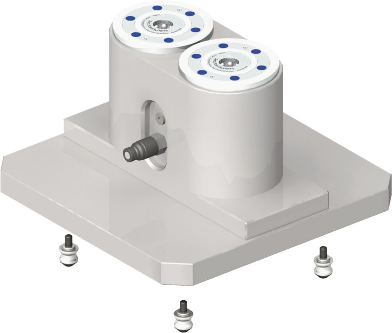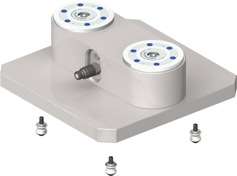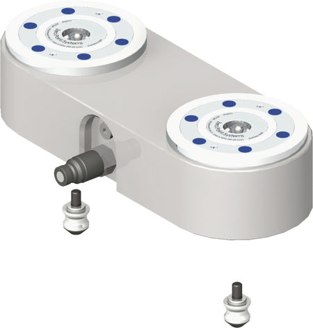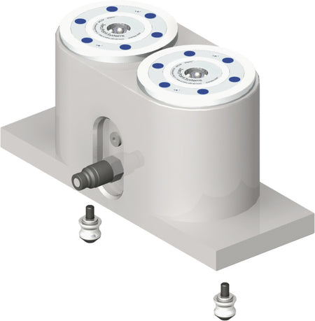 Hydraulický upínací třmen pro upnutí s optimalizovanou dobou nastavení na upínacích stanicích K10.2. Upínací koncovky upevněné vespod. Rozteč je 115 mm. Rychlospojka je předem sestavená, integrovanou funkci vyfukování lze připojit samostatně
