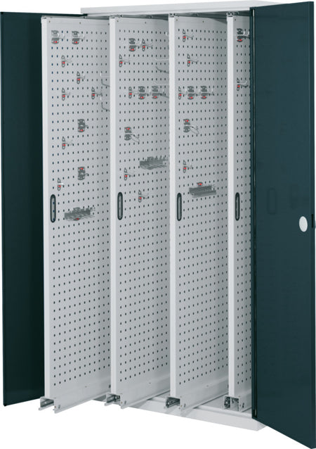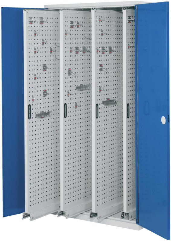 Využitelná plocha až 7,3 m při půdorysné ploše pouze 0,6 m. Ideální systém skříní pro bezpečné a dobře viditelné ukládání nářadí, klíčových profilů atd. na nejmenším možném prostoru. Vertikální skříně jsou vybaveny pouze výsuvnými regály.