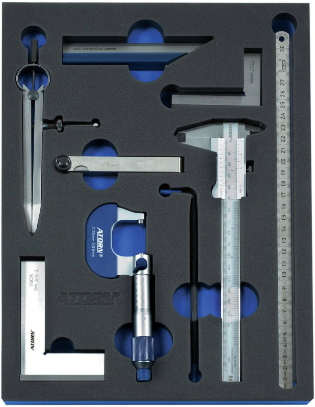 Díky výřezům o přesných rozměrech v kontrastních barvách (modré) je ihned vidět, které nástroje chybí; nehrozí tedy jejich ztráta