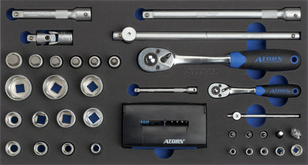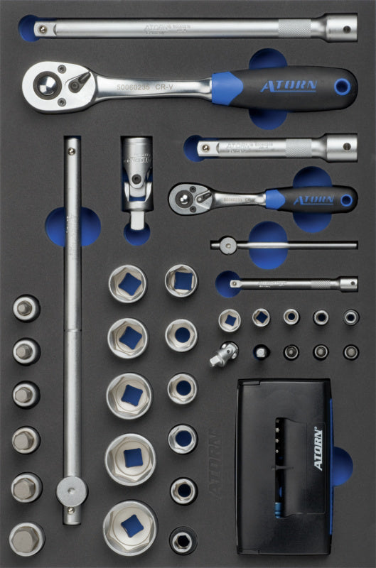 Vložka z tvrdé pěny s nářadím, sada nástrčných klíčů 1/2"–1/4"