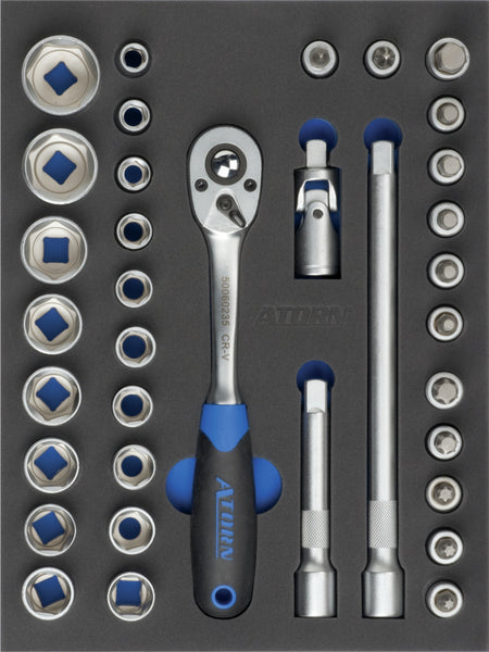 Vložka z tvrdé pěny s nářadím, sada nástrčných klíčů 1/2"