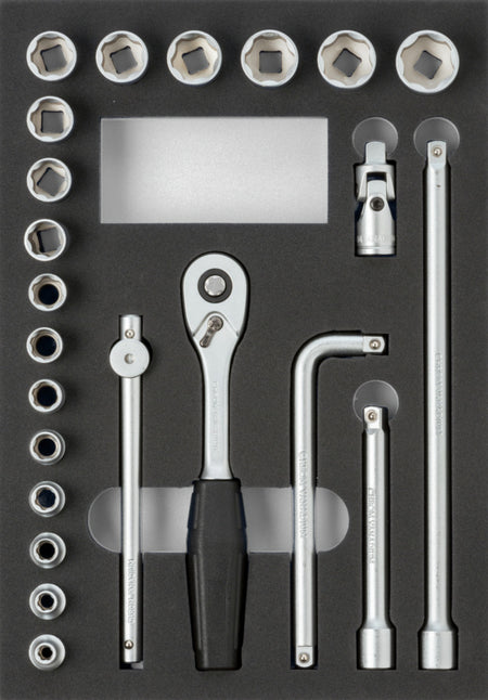 vložka z tvrdé pěny s nářadím, sada nástrčných klíčů 3/8"