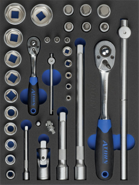 Vložka z tvrdé pěny s nářadím, sada nástrčných klíčů s šestihrannými vložkami