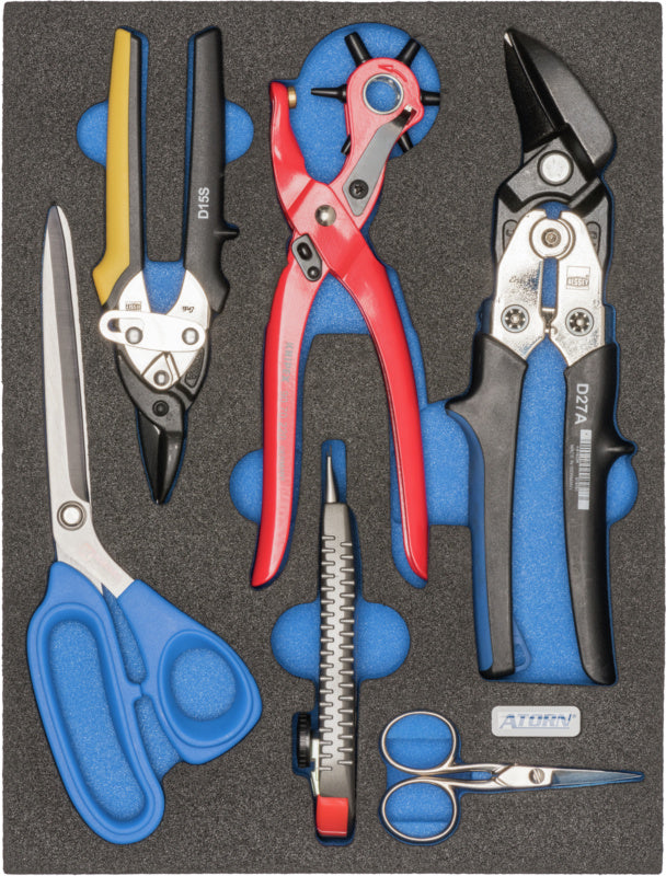 Vložka z tvrdé pěny s nářadím, sada nůžek/kleští/nožů