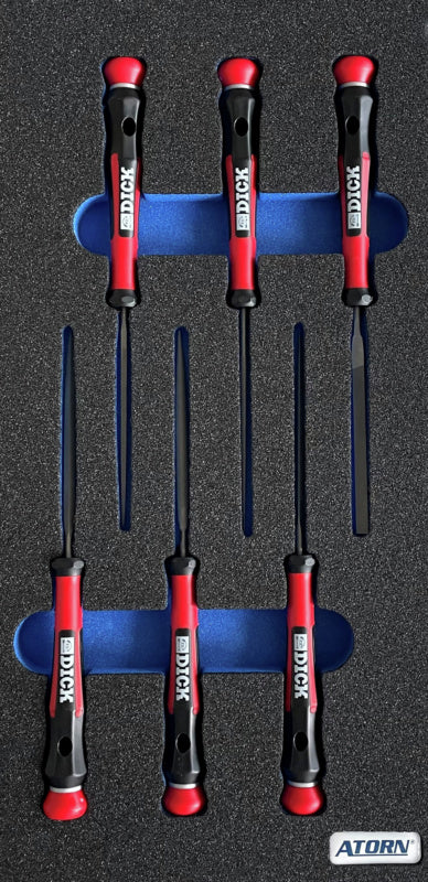 Přesné výřezy v kontrastní modré barvě zaručují snadné zjištění, zda nechybí nějaké nástroje a brání ztrátě nástrojů