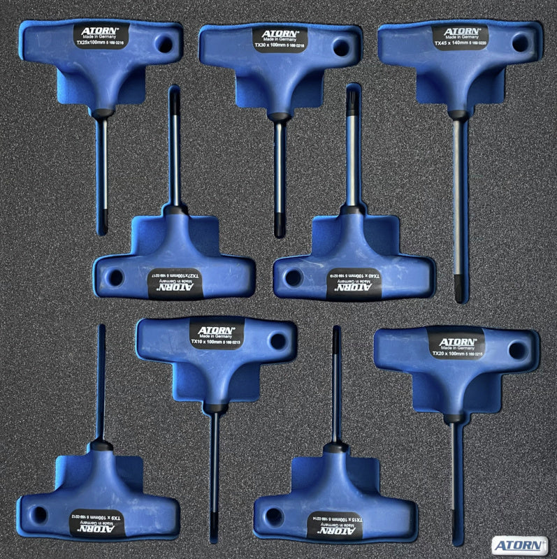 Vložka z tvrdé pěny – T-rukojeť, sada 9 ks šroubováků TX