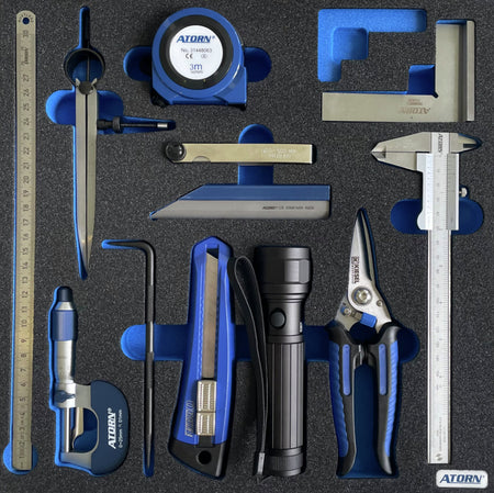 Přesné výřezy v kontrastní modré barvě zaručují snadné zjištění, zda nechybí nějaké nástroje a brání ztrátě nástrojů