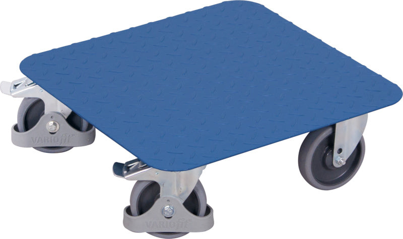 Svařovaná ocelová konstrukce, ložná plocha z rýhovaného plechu, práškově lakovaný vozík, trvalá ochrana povrchu, nárazuvzdorné a poškrábané termoplastické gumové pneumatiky na plastových ráfcích s přesnými kuličkovými ložisky s hlubokými drážkami, šedá barva, nezanechává stopy, ochrana koleček a nohou, čtyři otočná kolečka (z toho dvě s brzdou).
