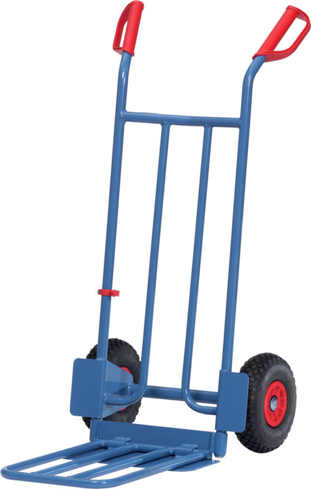 Vozík na pytle se vertikálními vzpěrami a sklápěcí lopatou