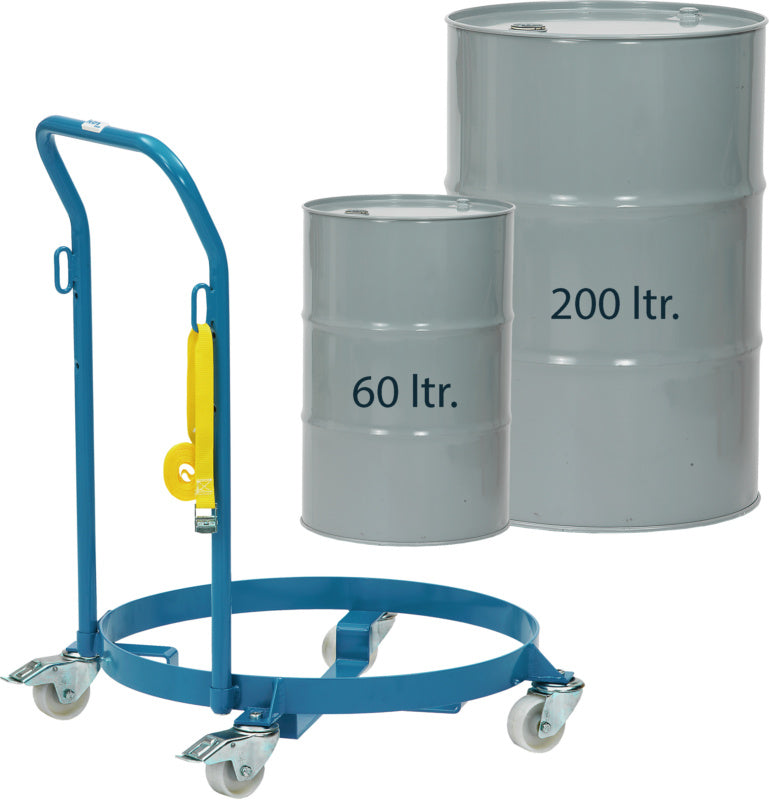 Vozík na sudy s vnějším kroužkem a tlačnou rukojetí