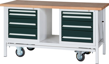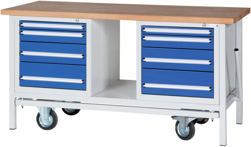 Vozík s pracovním stolem se sklápěcími pojezdovými kolečky, pracovní výška 840 mm