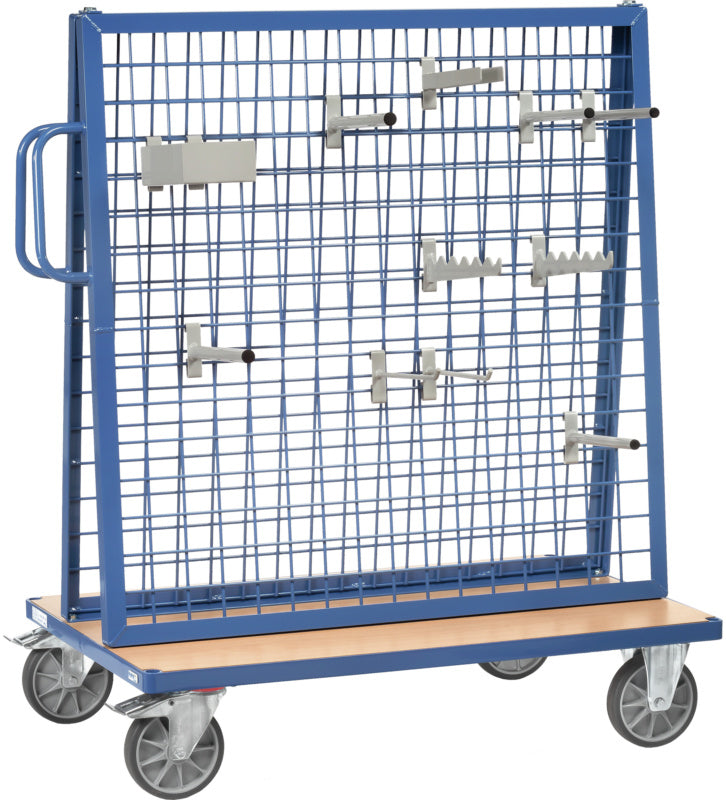 Přepravní a vychystávací vozík pro materiál příslušenství, s držáky na kabely, hřídele, trubky atd.