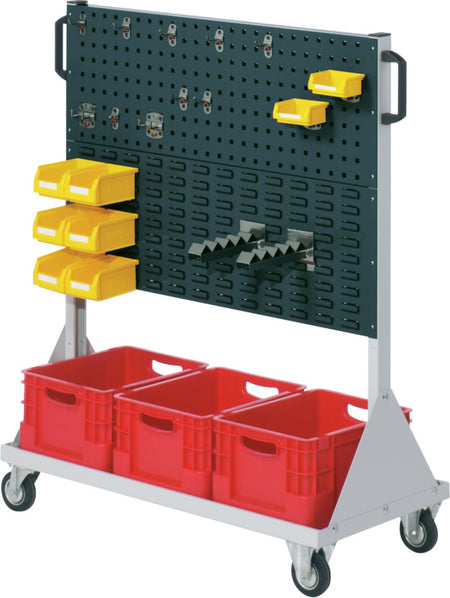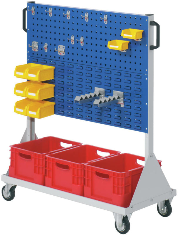 Pro převoz materiálu a nářadí. Užitečná pomůcka v dílně, ve výrobě a v montážní hale. Pro přehledné skladování a přepravu malých dílů od nářadí až po objemný materiál. Možnost lokalizace postupů.