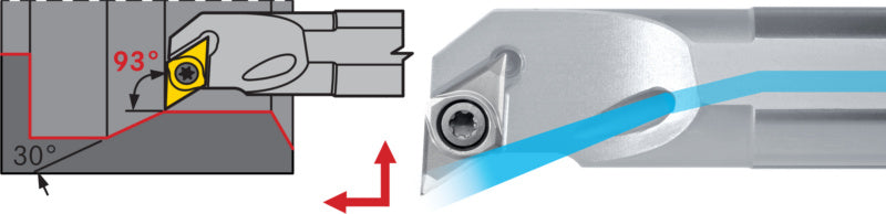 Přesně vyrobený vnitřní držák, z oceli, s vnitřním chlazením, typ D, úhel stoupání 93,5°, vrcholový úhel 55°, úhel podbroušení 7°