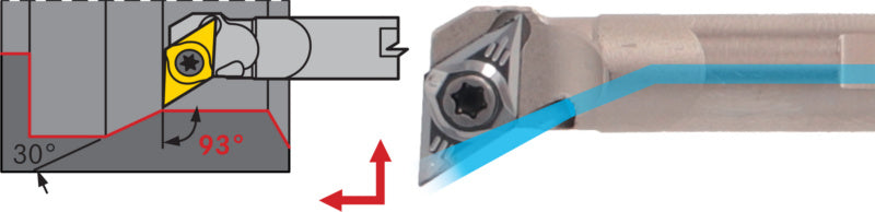 Přesně vyrobený držák, z tvrdokovu, s vnitřním chlazením, typ D, úhel stoupání 93,5°, vrcholový úhel 55°, úhel podbroušení 7°