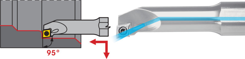Přesně vyrobený držák, z oceli, s vnitřním chlazením, odsazený, typ C, úhel nastavení 95°, vrcholový úhel 80°, úhel podbroušení 7°
