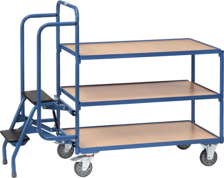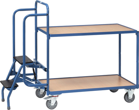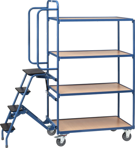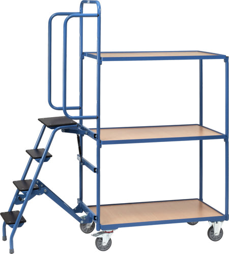 Dřevěné schůdky na předních stranách, které se při vykládání automaticky zvednou a při zatížení pevně stojí na zemi, automaticky aretují vozík.