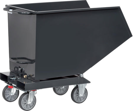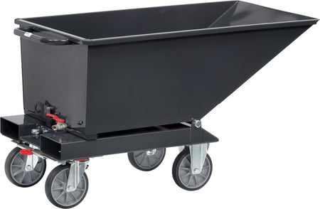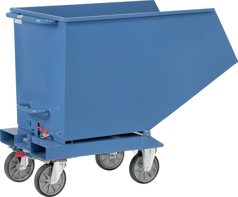 vyklápěcí vozík na piliny, ruční vyklápění – pojízdný s brzdami Totalstop