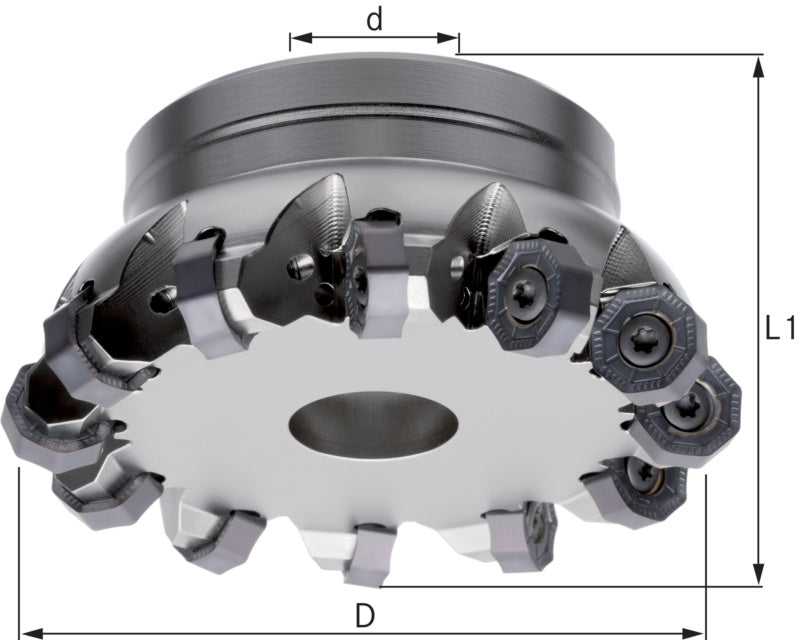 Vysoce výkonné rovinné frézy jsou nástroje pro ekonomické obrábění ocelolitiny. Vyměnitelnou břitovou destičku lze použít oboustranně a má celkem 16 řezných hran. Navzdory nízkým hodnotám osového přísuvu max. 3 mm (4 mm) a velikosti destičky 12,7 mm (16 mm) umožňují řezné hrany používat významně vyšší rychlosti posuvu a významně přispívají k lepší produktivitě. Nízké osové síly zaručují nejvyšší hladkost obráběných povrchů s nízkou výškou nerovností (Rz 15 Nm), dokonce i při hrubém obrábění.